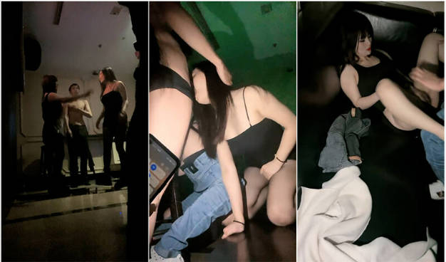 三女壹男KTV迷亂秀,關上燈堵上房門,房間內隨著音樂慢搖舞動,玩嗨了帶回酒店亂啪
