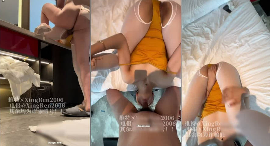 2025年4月最新,上海的一个舞蹈生,【小杏仁】最新定制,黄色小天鹅服,与上课不同的是大袜换成了开档白丝,